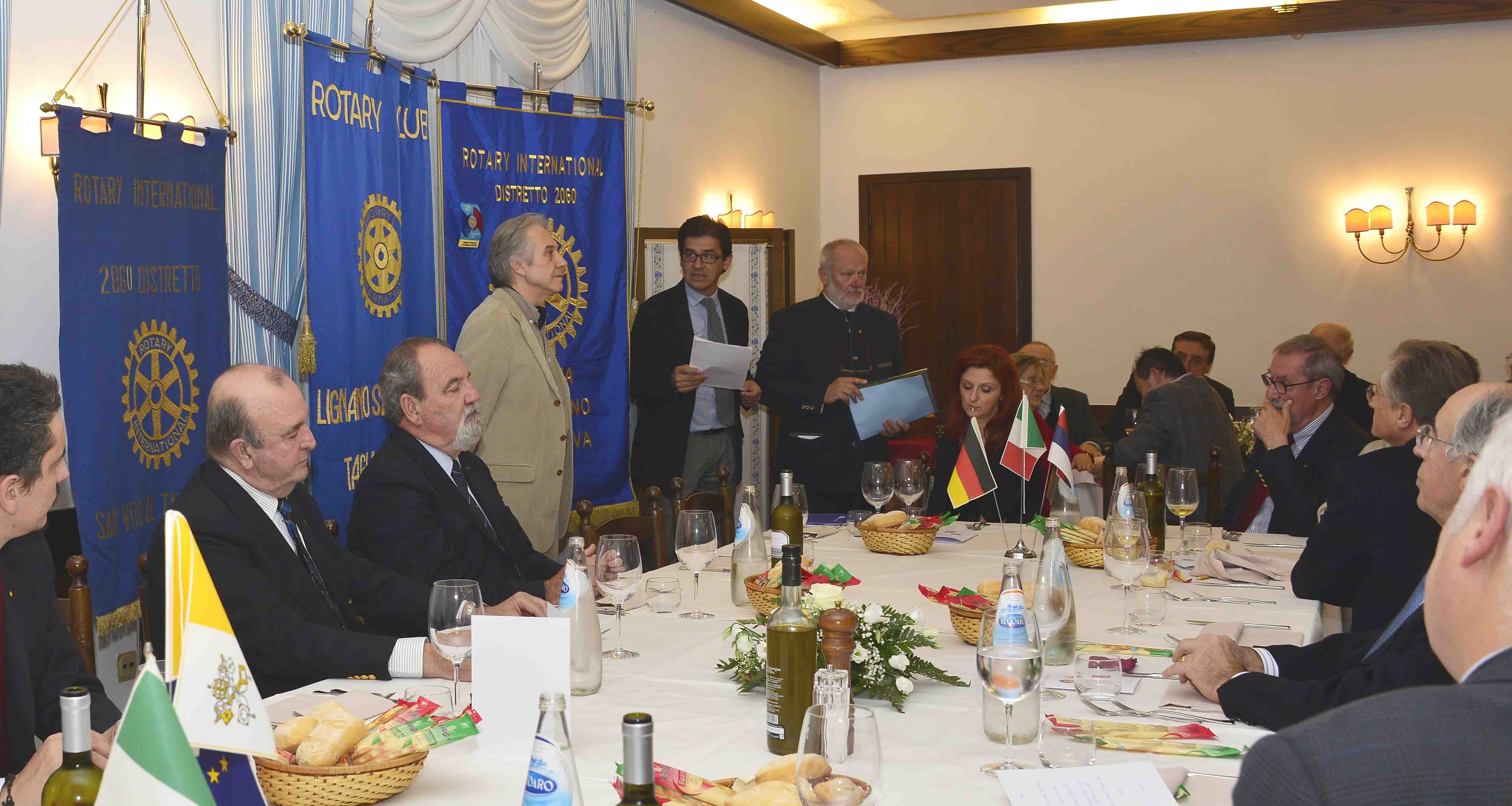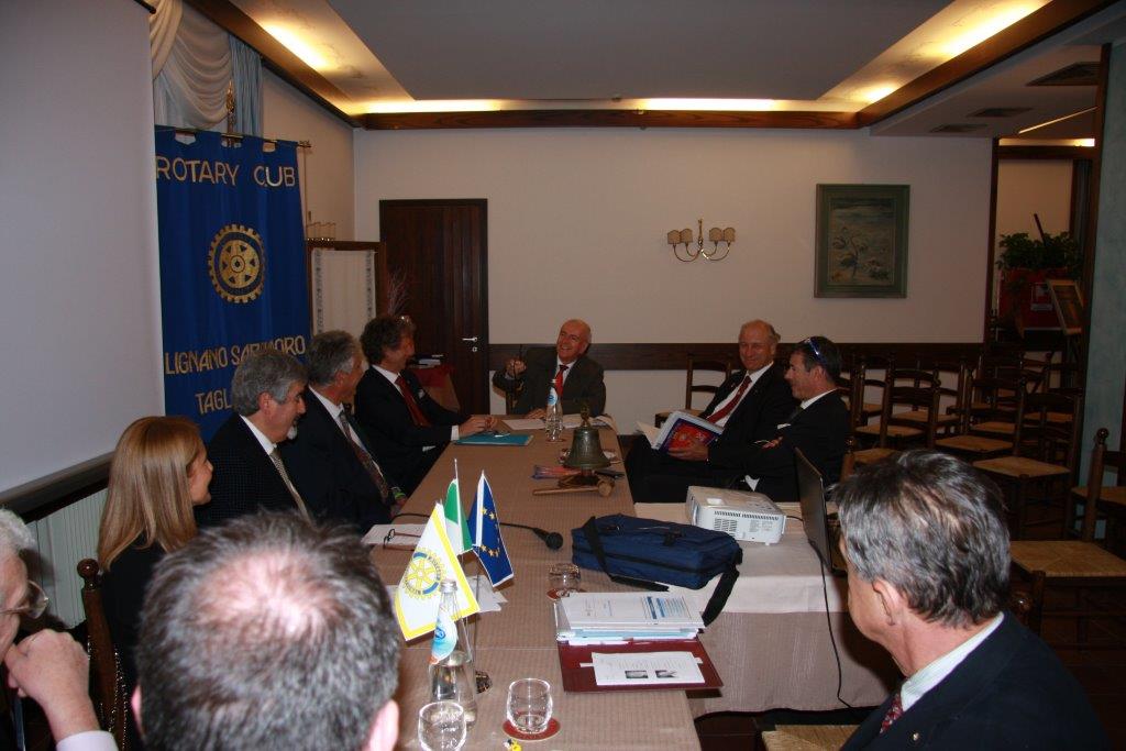Uno scambio di idee e informazioni durate il quale il Governatore ha avuto modo di dialogare con Mario Andretta (Incomig) e i Presidenti di Commissione Georgios Krossoglou (Effettivo), Paola Piovesana (Progetti), Luigi Tomat (Amministrazione) Maurizio Trequadrini (Tesoriere), Gabriele Bressan (Rotary Fundation) e Piergiorgio Baldassini (PR). Assente giustificato Cottignoli (40°) che ha illustrato alla gentile consorte del Governatore, Signora Alessandra, le opere d’arte esposte a Latisana.