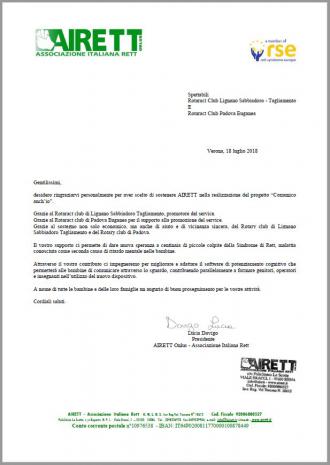 IL ROTARACT CI INOLTRA LA LETTERA DI LUCIA DOVIGO, PRESIDENTE DELL'AIRETT
