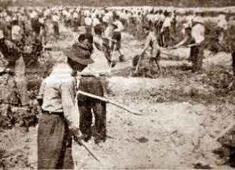 Sono un sorprendente esempio di “sciopero alla rovescia”, in cui i partecipanti lavorarono volontariamente per protestare contro la mancanza di lavoro. Il canale Cormor, ancora agli inizi del ‘900, interrompeva il proprio corso in comune di Pocenia, tra Paradiso e Mortegliano. Circa 10.000 ettari di terreno a nord della statale 14 si trasformavano così, nella stagione delle piogge, in un enorme acquitrino. Una volta completato, il tracciato del canale avrebbe attraversato il territorio dei comuni di Castions di Strada, Pocenia, Muzzana del Turgnano, Carlino e Marano Lagunare – ma sarebbero stati quindici i comuni che avrebbero potuto giovarsi di quest'opera, in pratica tutta la zona compresa tra il Tagliamento e il Corno. Se il progetto fosse stato portato a termine così come ideato inizialmente, l'opera si sarebbe completata in 700.000 giornate lavorative (circa due anni di lavoro per 1.400 disoccupati), con conseguente bonifica di 11 mila ettari di terreno.