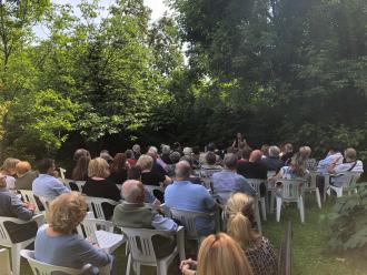 Nel Parco della splendida Casa di campagna, ospiti della gentile signora Feruglio, davanti ad un uditorio molto numeroso ha preso la parola l'assessore alla cultura del Comune di Rivignano Teor, Angela Piantoni, poi per i due rispettivi Rotary, il dottor Canciani per Codroipo - Villa Manin ed il dottor Cottignoli per Lignano sabbiadoro - Tagliamento.