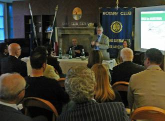 Martino Kraner, socio del club di Tarvisio, ha introdotto il relatore, titolare di un’importante azienda del Land Kärnten, che ha avuto il coraggio di avviare un’attività in un paese che seppure vicino è diverso e complicato. La sua azienda a Villach ha il controllo dell’intera filiera, dal contadino sino alla produzione con una gamma ampia che va dai prodotti classici sino alla selvaggina e recentemente anche il prosciutto in collaborazione con un’azienda di San Daniele. A Lignano, città alla quale è affezionato e dove ha anche casa, ha aperto recentemente un esercizio nella zona artigianale.