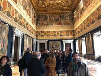 Descrivere la fastosità e grandiosità del Palazzo non è semplice. La visita ha riguardato la Sala Grande, la Sala della Colonna Bellica, la Sala dell'Apoteosi di Martino V, la Sala del Trono, la Sala Gialla, la Sala dei Primitivi.