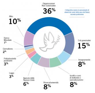 I borsisti della pace sono impegnati nello sviluppo della pace e operano come leader in tante organizzazioni internazionali, nazionali e locali. Promuovono la cooperazione nazionale e internazionale, la pace e la risoluzione dei conflitti di successo nella loro vita quotidiana, nella loro professione e attraverso le loro attività di volontariato a servizio della comunità. Ogni anno, vengono selezionati fino a 100 individui da tutto il mondo, dopo una rigorosa selezione internazionale, per studiare presso uno dei centri della pace del Rotary. Attraverso la formazione accademica, il tirocinio e le opportunità di networking globale, i centri della pace del Rotary sviluppano leader che diventano Dopo appena un decennio, i centri della pace del Rotary hanno fornito la formazione a oltre 1000 borsisti nel campo della pace. Molti sono diventati dei leader presso organizzazioni internazionali o hanno creato una fondazione in proprio. Nella sottostante infografica i borsisti sono ripartiti secondo il loro impiego attuale. Dall'analisi della stessa emerge come l'alta formazione e i programmi di mentoring rotariani permetta loro di lavorare e collaborare in organizzazioni ed enti governativi strategici per la costruzione di un mondo di pace. Il programma dei centri della pace del Rotary è possibile grazie al generoso sostegno di un gruppo relativamente piccolo di rotariani e amici del Rotary, le cui donazioni e promesse d’impegno integrano i finanziamenti della Rotary Foundation catalizzatori della pace e prevenzione e risoluzione dei conflitti. Le borse di studio coprono le tasse universitarie, vitto e alloggio, viaggio di andata e ritorno e un periodo di tirocinio linguistico.