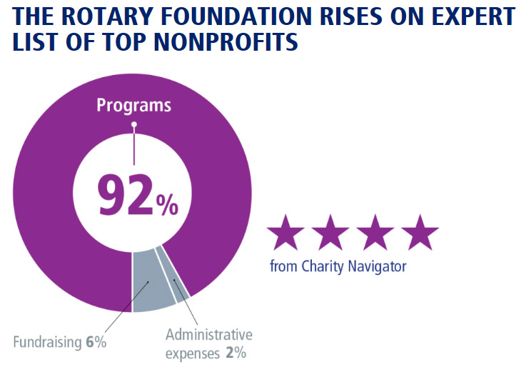 La Fondazione Rotary ha continuato la sua crescita costante, avanzando di 35 posizioni sino alla 85° nella “The Chronicle of Philanthropy”, la classifica annuale delle prime 400 organizzazioni non profit negli Stati Uniti. La classifica si basa sui contributi monetari da fonti private e riflette la crescente generosità di coloro che sostengono la missione del Rotary.