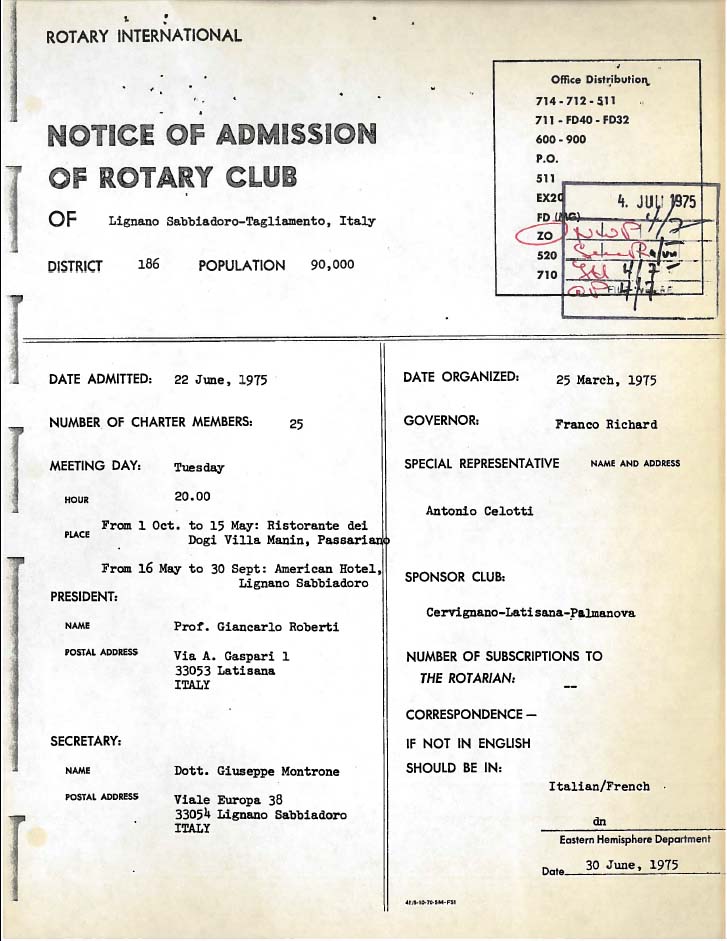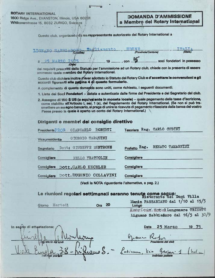1 rag. Giancarlo BERGAMIN * 2 p.a. Mario CIPOLOTTI * 3 avv. Giuseppe CUDINI * rag. Paolo CUDINI * 5 p.i. Nello FRATTOLIN * 6 Michelangelo GASPARI * 7 dott. Giuseppe MONTRONE * 8 Guido NICOLINI * 9 prof. Giancarlo ROBERTI * 10 rag. Pietro TREVISAN * 11 Giacomo GIRARDI * 12 ing. Danilo GUARAN * 13 dott. Alessandro ARMANO * 14 dott. Carlo KECHLER * 15 dott. Massimo BIANCHI * 16 rag. Renato TAMAGNINI * 17 dott. Renato GRUARIN * 18 Giorgio TARQUINI * 19 duca Gianluca BADOGLIO * 20 p.i. Luigino MORETTI * 21 dott. Luigi BUTTOLO * 22 Antonio BULFONI * 23 Paolo CARNELUTTI * 24 dott. Eugenio COLLAVINI * 25 ten. col. Danilo FRANZOI * Guido CARNELUTTI * Carlo Alberto VIDOTTO