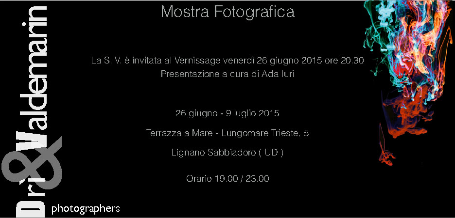 Romeo Gollino, segretario del RC Codroipo ci ha inoltrato l’invito di Maurizio Valdemarin, socio del RC Codroipo Villa Manin, che inaugura con Marina Dri la loro mostra di arte fotografica a Terrazza Mare di Lignano Venerdì 26 Giugno prossimo, alle ore 20,30.