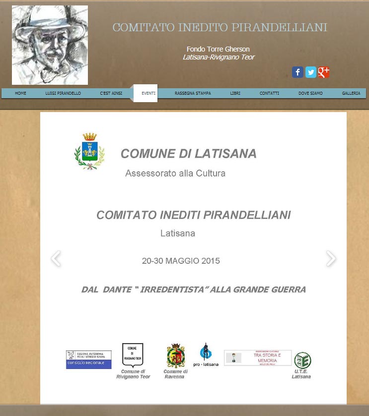Il nostro socio Enrico Cottignoli, Presidente del Comitato Inediti Pirandelliani che organizza nel mese di maggio a Latisana una serie di importanti manifestazioni, ci segnala che tutto il programma è ora disponibile nell’apposito sito costruito per l’occasione.