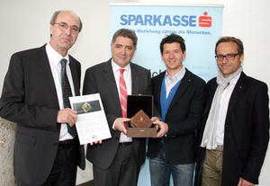 Nella foto (da sinistra) i due codirettori della Sparkasse, l'artista Florian Schluifer e il responsabile del Club per l'ioniziativa, Thoma Gredler.