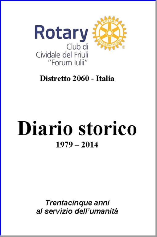 Il Rotary Club di Cividale del Friuli per celebrare il 35nnale ha realizzato un proprio “Diario Storico”, aggiornabile ogni anno: al termine di ogni anno rotariano verrà aggiunto il diario di quello appena terminato.
